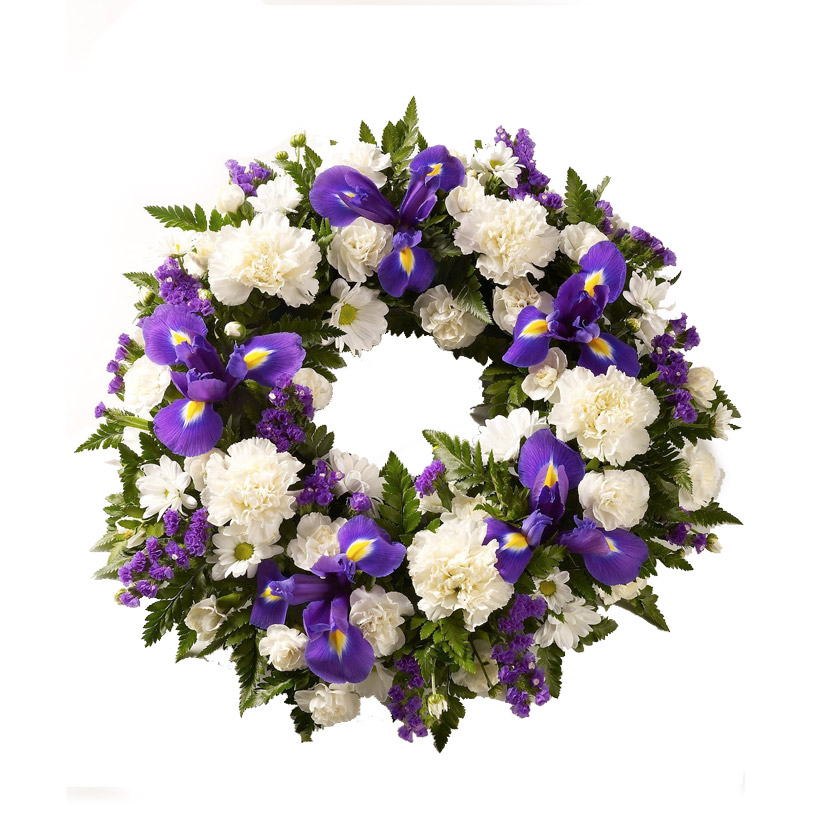 Wreath with roses,iris,chrysanthemum and greenery